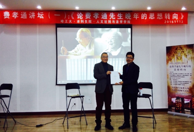 2016年11月13日,北京大学周飞舟教授(社会学系副主任、博士生导师)在哈工大以《费孝通先生晚年思想的转变》为题作了学术演讲,内容横贯了费老一生的思想渊源。